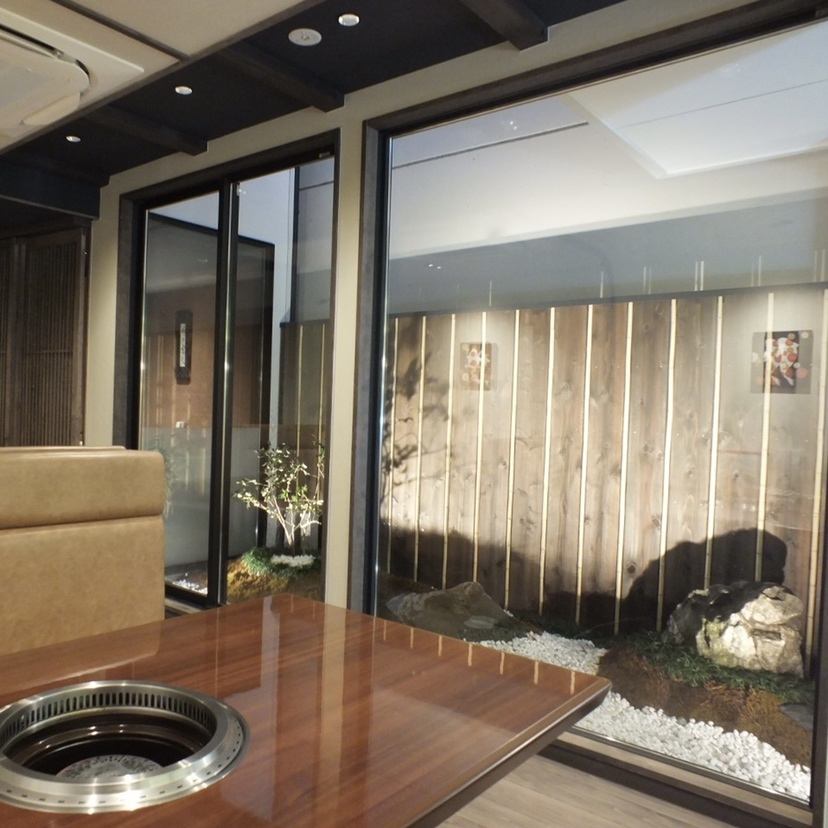 店内は、テーブルや庭の見える落ち着いた空間で、ゆったりとした時間をお過ごしいただけます。お庭の見えるゆったりとした席で焼肉をお楽しみください◎会社のご宴席にも、ご家族やご友人とのお食事にもご利用ください。